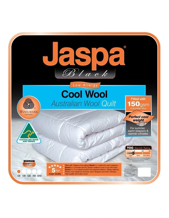 Filled with 150 gsm of Australian Wool. Ideal for hot sleepers and hot months/states. Low Allergy Excel Wool. Approved by Woolmark and Made in Australia.