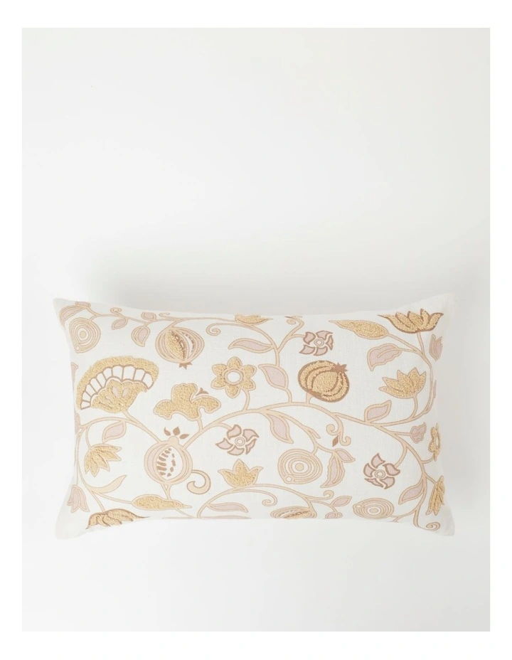 Heritage Camivelle Embroidered Floral Cushion in Taupe: 60×40 cm