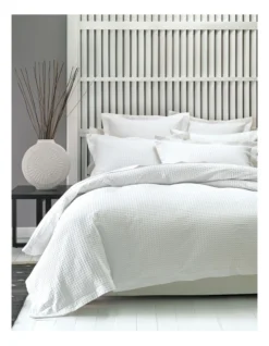 Timeless, soft and easy to launder, our Deluxe Waffle is made from a premium-quality cotton waffle weave. Both the quilt cover and pillowcases are finished with classic tailored edges and reverse to plain-coloured cotton percale.