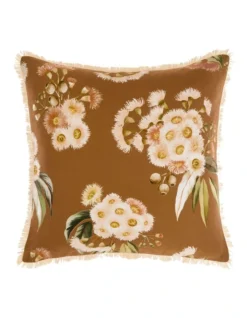 With clusters of blossoms set against an earthy brown cotton sateen ground, this cotton-fringed cushion will look marvellous paired with its coordinating quilt cover set, European pillowcases and cushions, to mirror the plump, fluffy texture of a classic blossom.
