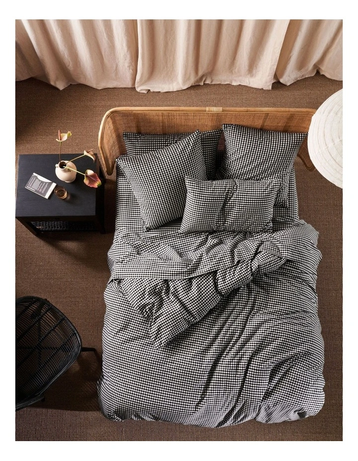 Destined to be a year round favourite, Springsteen’s black gingham is made from a beautifully soft, washed cotton. This reversible set is utterly perfect for those warm nights and looks superb styled with its coordinating European pillowcases and sheet set, be it in matching black or as a stylish contrast to caramel or stone.