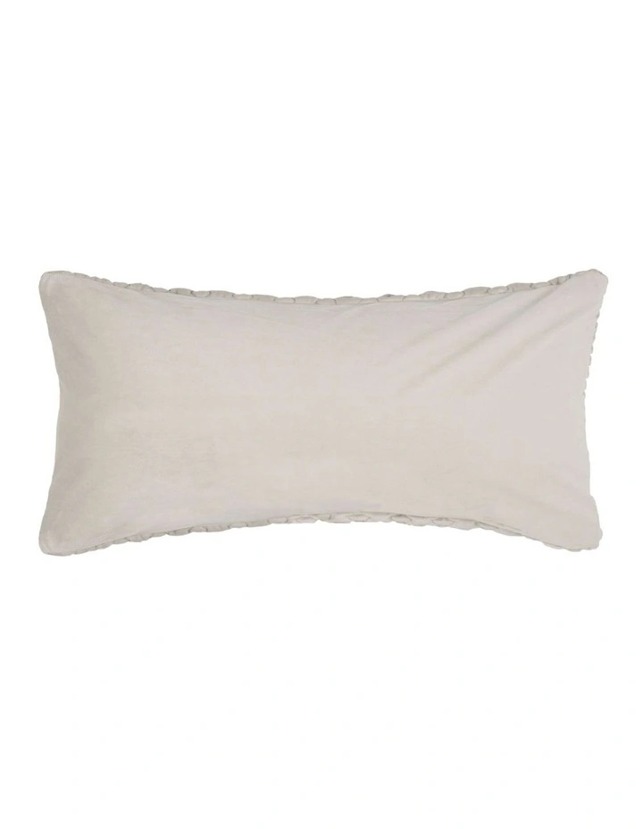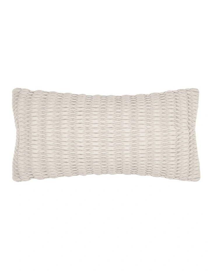 Loxton accessories combine pattern with tactile softness. Plush velvet is gathered and embroidered into raised stripes, reversing to smooth velvet for visual and textural contrast. The range comprises a European pillowcase and square cushion and a Long Cushion, in three classic colours – navy, platinum and champagne.