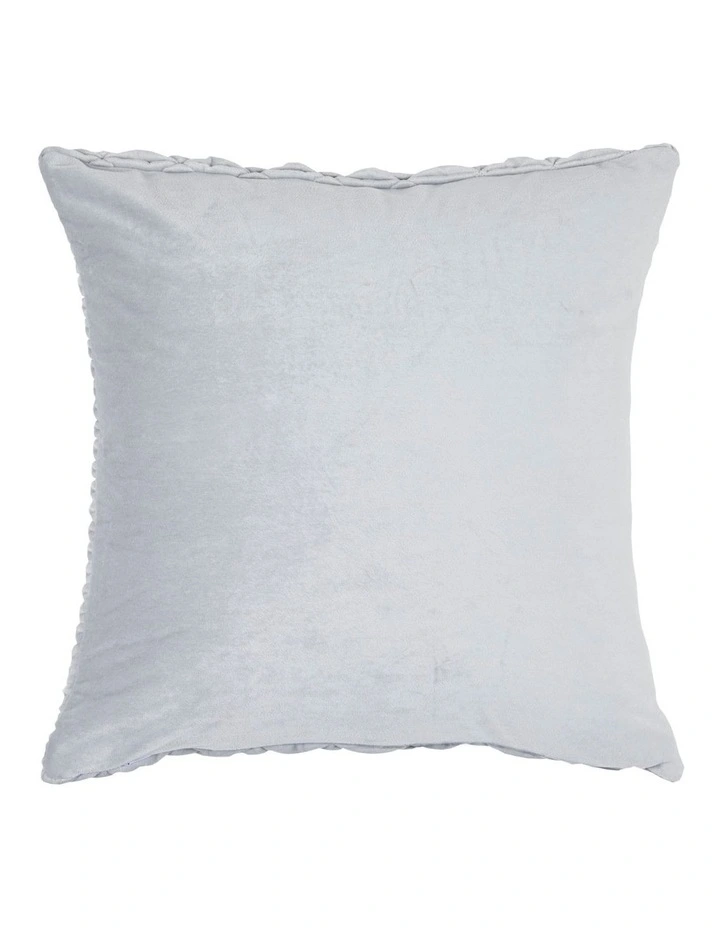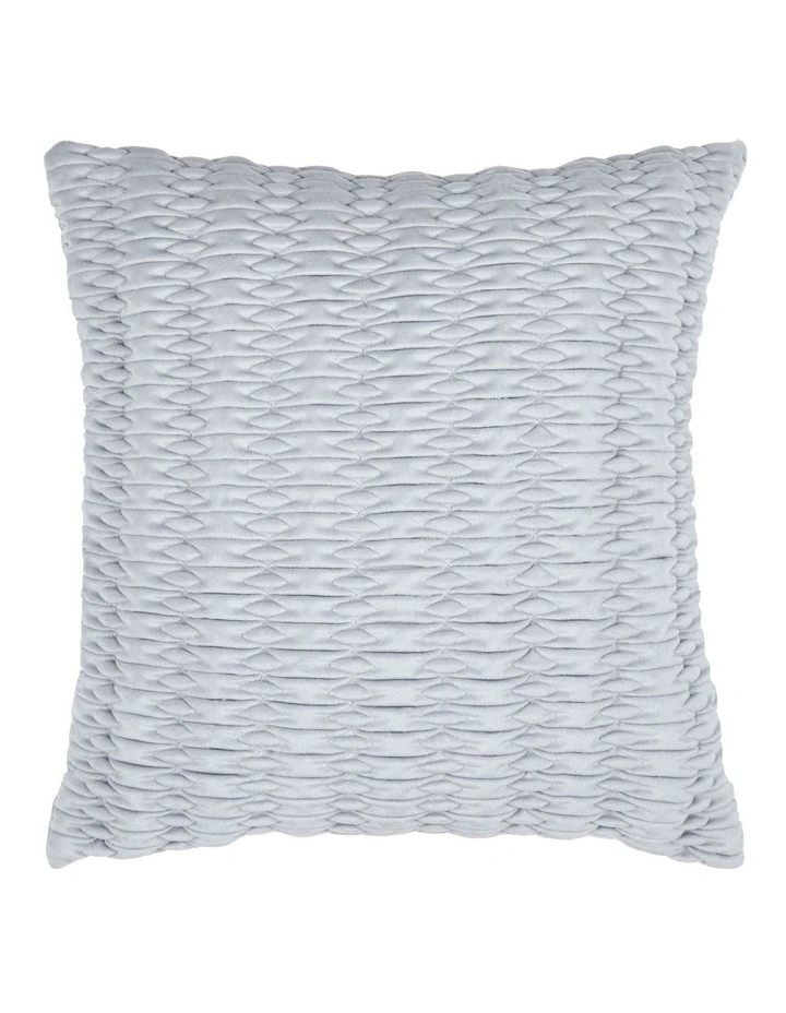 Loxton accessories combine pattern with tactile softness. Plush velvet is gathered and embroidered into raised stripes, reversing to smooth velvet for visual and textural contrast. The range comprises a European pillowcase, square cushion and long cushion, in three classic colours – navy, platinum and champagne.