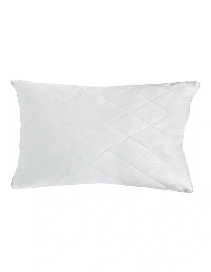 The moisture-wicking and thermo-regulating properties of the fill ensure a comfortable nights sleep and the plush fibre fill cradles the head and neck to offer softness and support. The pillow is encased in a subtly-textured diamond quilting that is made from 100% cotton and provides a medium-firm support, that is suitable for side and back sleepers.