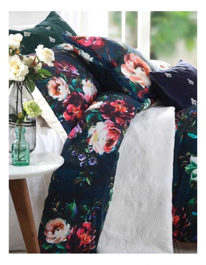 Printed digitally on 300 thread cotton sateen, this illustration of fresh florals will pop even more paired with its coordinating European pillowcases and matching cushion.